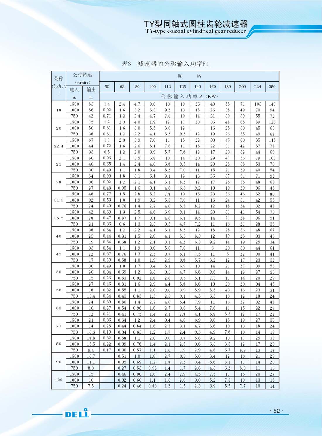 TY系列同軸式硬齒面齒輪減速器是理想的動力傳送裝置,它廣泛用于冶金、礦山、化工、紡織、儀器、能源、建材等行業。減速器的齒輪圓周速度不大于20m/s,允許正、反轉。使用于水平臥式安裝,前 后傾斜角不大于20。直聯電機為Y系列三相異步四級電動機,電機的安裝型式為B5或B35;工作環境溫度為0攝適度-40攝適度。 減速器的型號TY50/TY63/TY80/TY100/TY112/TY125/TY140/TY160/ TY180/TY200/TY224/TY250